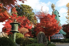 耕三寺の境内のモミジやカエデなどが美しく紅葉し、国宝建造物を手本として建てられ…