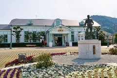 大正14年(1925年)に建てられた駅舎は大正ロマンが漂い、白い壁にエメラルド…