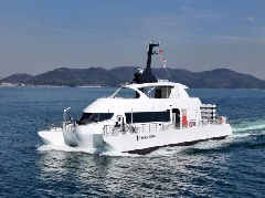 関門海峡を起点に運航する「HANARIA」は、水素とバイオディーゼルを使用した…