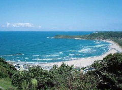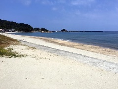 サラサラの「鳴り砂」の砂浜が長く連なる遠浅の浜辺。緩やかなカーブを描くような美…