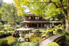 かつて石見銅山で繁栄した豪族、堀氏の名園。書院造りの客殿「楽山荘」の2階から、…