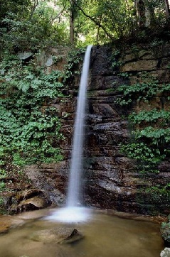 鳥取県との県境、標高704mの鷹人山中腹にある三段の滝。本滝の高さは10m、木…