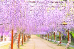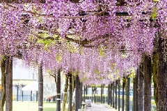 日本全国から約100種類のフジを集めて作られた公園。藤棚は総延長が500mもあ…