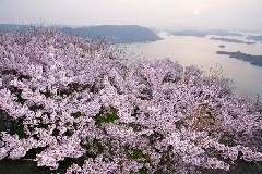 山頂から眺める瀬戸内海の多島美が随一と言われる筆影山には、約2000本のソメイ…