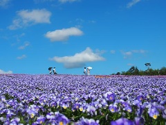 春から秋にかけて、ネモフィラ、ビオラ、ゆり、バーベナ、コスモスなどの季節の花々…