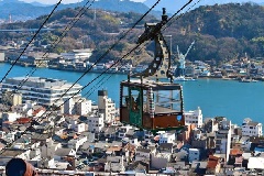 尾道市街地から千光寺公園までを、約3分で結ぶロープウェイ。山麓駅のすぐ横の、艮…