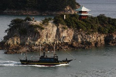 坂本龍馬ゆかりの地、鞆の浦から仙酔島までを運航する市営渡船。全長約22m、19…