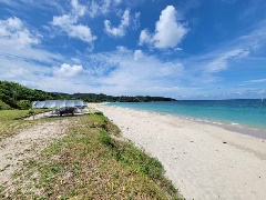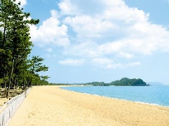 「快水浴場百選」に選ばれているビーチ。約1kmの白い砂浜、海は100m先まで続…