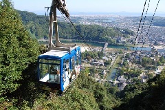 錦帯橋を渡って約10分ほどで着く吉香公園内の山麓駅から、標高約200mの山頂駅…