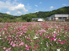 下松市の中央に位置する下松スポーツ公園には、敷地内に花畑があり、例年9月中旬になると、一面にコスモスが咲き揃います。下松スポーツ公園は、春のシダレザクラと菜の花畑、夏のヒマワリ畑も人気があるほか、グラウンドや体育館、冒険の森(各種アスレチック遊具)が整備されており、市民の憩いの場となっています。