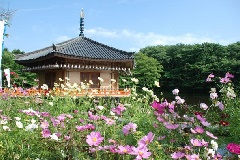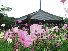 「三人寄れば文殊の智恵」の格言で有名な安倍文殊院では、コスモス迷路が例年9月中旬から見頃を迎えます。境内に植えられた、約30種類のコスモスが彩り豊かに咲き、訪れる人の目を楽しませます。風にゆれる可憐なコスモスの花に、秋の気配を感じることができます。