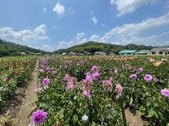全国有数のダリア球根の生産地、上佐曽利地区では、約300種10万本のダリアが、例年10月上旬から11月上旬にかけて美しく咲き誇ります。秋季開園期間中は花摘みができ、ダリアを持ち帰って楽しむこともできます(有料)。10月18日と19日は「ダリア花まつり」が開催され、地元で収穫された新鮮野菜や秋植え球根の販売などが行われます。