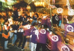 五社の御輿が久世商店街を練り歩き、だんじりがそれに付き従う「五社御祭礼」が行われます。夜には、九社のだんじりがぶつかり合う、勇壮な「だんじり喧嘩」が始まります。久世のだんじりは鋭角の突先に張った鉄板をぶつけ合い、当たる角度や飛び散る火花を楽しみます。26日は喧嘩終了後、だんじりが一斉に鐘や太鼓を鳴らす中、餅まきが行われ、祭りはフィナーレを迎えます。