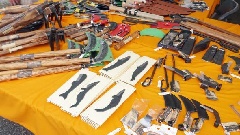 伝統工芸「土佐打刃物」の町、香美市土佐山田町ならではの刃物市が開催されます。土佐打刃物の展示即販売をはじめ、刃物研ぎ(有料)が行われます。個性豊かな作品が広場一面に広がる「山田のかかしコンテスト」や、世代を超えて盛り上がる人気企画「あんぱん食い競争」なども催されます。土佐の豊穣祭の会場でもあり、幻の土佐あかうしの炭火BBQを楽しめる「焼肉プラザ」などの物部川流域グルメも堪能できます。隣接する高知工科大学の大学祭も同時開催され、会場がたくさんの人で賑わいます。