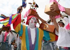 笑の宮「丹生神社(にゅうじんじゃ)」で、毎年神無月(10月)に執り行われる奇祭です。奇抜な格好をした祭りの先達(鈴振り)の「笑え笑え」の掛け声に合わせて、笑いながら丹生神社まで練り歩く姿に、毎年多くの観光客の賑わいと、それにも勝る笑い声がこだまします。