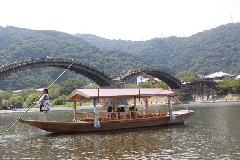 澄み渡る秋空の下、錦帯橋付近で秋の遊覧船「もみじ舟」が運航されます。屋形舟に乗って、紅葉の名所として知られる紅葉谷公園や、優美な錦帯橋などを眺めながら、秋の水上散策が楽しめます。貸切船となりますが、毎年11月には、大切な家族の一員であるペットと一緒に乗船できる「ペット舟」の運航もあります(5日前までに要事前予約、有料)。爽やかな秋の風を感じながら、ゆったりとした時間を過ごすことができます。