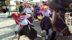 室町時代初期から続く今古賀風流が、毎年10月の三島神社境内にある竜神宮の例祭で奉納されます。悪疫退散、五穀豊穣、家内安全の祈願、感謝を表すお祭りで、座元から「道ばやし」を成して竜神宮まで行列します。先導の天狗(猿田彦神)、赤鬼、青鬼、小面3人、鉦打ち、謡方といった総勢40人余りが神前で舞った後、村中の家々を回ります。頭にしゃ熊をつけ、袴、手甲、脚絆姿の太鼓打ち3人1組が、御神体の着座する太鼓を謡にあわせて打ち舞う姿は、一見の価値があります。江戸時代初期に現在の型になったとされ、福岡県の無形民俗文化財に指定されています。