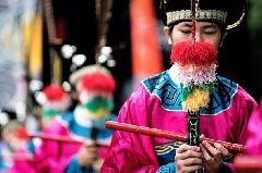 300年以上の伝統を持ち、佐賀県重要無形民俗文化財に指定されている「釈菜(せきさい)」は、儒学の祖「孔子」を偲ぶ中国式の祭典で、春と秋に開催されます。釈菜終了後、中国との交流をさらに深めるために導入され、現在では子どもたちにより演じられるようになった「釈菜の舞」や「腰鼓(ようこ)」、「獅子舞」の披露など、特色ある催しが行われます。