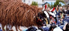 奈良の春日大社からの勧進を受け、1190年頃に創建されたと伝わる古社、春日神社の秋の例大祭が執り行われます。この地方の祭りに特有の「牛鬼」の練りをはじめ、「五つ鹿」などが行われます。「御船練り」では、漆塗りのお船が台船に乗せられ、三味線や太鼓にあわせて歌舞が演じられて、海上渡御が行われます。用いられる道具や衣装は、昔から続く歴史のあるものが多く、祭りは古式ゆかしく、しめやかに進められます。