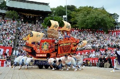390余年の歴史を誇る長崎の氏神「諏訪神社」の秋の大祭です。3つの御神輿が多数のお供を従えてお旅所へ向かう「お下り」、各踊町(おどりちょう=出演町)が市内中心部の事業所や官公庁、民家などに敬意を表して踊りを呈上する「庭先回り」、3つの御神輿がお旅所から諏訪神社へもどり、3日間の祭りの幕を華やかに閉じる「お上り」などが行われます。その年の出番に当たった氏子の町を踊町と呼び、「本踊」、「曳き物」、「担ぎ物」など、それぞれ特色ある演し物を奉納する踊町は、7年に一度まわってきます。