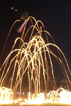 市木地区に300年以上前から伝わる祭りを20数年前に復活させた「火祭」が、今年も岩折神社前の多目的広場で開催されます。こども柱松や松の下笹踊り、勢子(せこ)による松明投げなど、日没とともに幻想的な光景が次々と繰り広げられます。毎年、地域の住民が力をあわせて準備をする手づくりの祭りです。