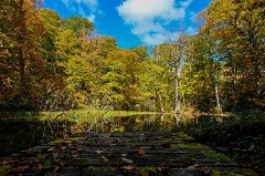 奥裾花自然園を包み込むブナの原生林は、例年10月になると鮮やかな黄金色に輝きます。全国でも数少ない、人の手が入っていない広大なブナ林が静けさの中に広がります。周辺の奥裾花渓谷でも、ツガやクロベの常緑樹やカエデなどの広葉樹が色づく錦繍の山々が望めるほか、奥裾花ダム湖から見る奥裾花大橋や、奥裾花大橋から見る奥裾花渓谷などもおすすめの紅葉スポットです。