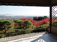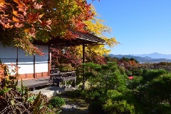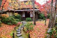 大河内山荘の庭園に植栽されたモミジやサクラが、例年11月になると色づき、深い趣を見せます。昭和初期の映画俳優、大河内伝次郎(1898~1962年)が、百人一首で有名な小倉山の裾野に造り上げた別荘で、国の文化財に指定されています。