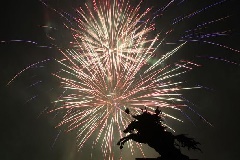 「菊池白龍まつり」のフィナーレを飾る花火大会が、菊池市ふるさと創生市民広場および商店街一帯で開催されます。30分間に、スターマイン、ミュージック花火、約3000発の花火が次々と打ち上げられ、至近距離から臨場感あふれる花火を楽しむことができます。まつりでは、菊池の守護神とされる長さ約50mにもおよぶ4頭の白龍が、勇壮に練り歩きます。