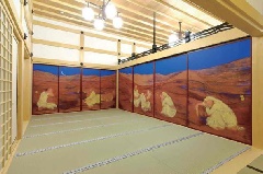 江戸時代の名所案内「都林泉名勝図会」にも、紹介された宝厳院の寺院庭園が、特別公開されます。嵐山を借景とし、美しい苔と紅葉が見事に調和した回遊式山水庭園の「獅子吼(ししく)の庭」などが、鑑賞できます。期間中の11月14日から12月7日には、夜の特別拝観も行われます。本堂にある田村能里子画伯筆の襖絵「風河燦燦三三自在」(別途拝観料が必要)も、あわせて公開されます。※本堂参拝は昼のみ(法要などにより、拝観できない場合があります)