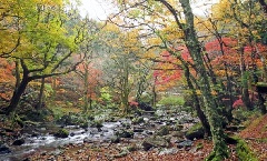 四国カルスト県立自然公園の中にある小田深山渓谷は、例年10月下旬から11月中旬にかけて、20種類以上の紅葉がピークを迎えます。遊歩道の散策が楽しめるほか、キャンプ場や丸太橋、車窓からの眺めを満喫できます。