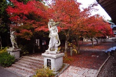 標高450mに位置する呑山観音寺では、例年10月下旬になると、境内の約1000本のモミジと1000本のドウダンツツジの紅葉が始まり、やがて山全体が真っ赤に染まります。呑山観音寺は福岡県内でも有数の紅葉の名所として知られ、県外からも多くの参拝者が訪れます。見頃にあわせて「紅葉まつり」が行われ、「瑜祇大宝塔」が特別公開されるほか、写経体験(有料)もできます。蚤の市「観音市」も同時開催され、境内にキッチンカーや手づくり雑貨などの店が日替わりで出店します。