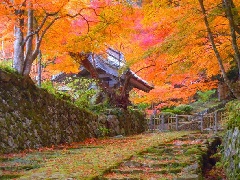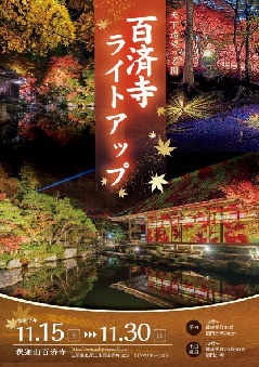 湖東三山最古の百済寺は、紅葉の名所として知られ、例年11月中旬になると鮮やかな紅葉で彩られます。特に錦繍の「天下遠望の名園」と「石垣参道」の紅葉は、「日本紅葉百選」の一つに選ばれており、池泉の水面に浮かぶ紅葉が、幽玄の世界へと誘います。見頃にあわせてライトアップも行われ、幻想的な雰囲気を楽しむことができます。如意輪観音半跏思惟像と聖観音像の拝観は、17時頃までとなります。