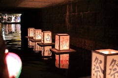北原白秋を偲び、柳川のお堀で水上パレードが行われます。ほおずき提灯やあんどんで飾られた数十隻のどんこ船に、乗船客が乗り込み、夜のお堀をパレードします。白秋の童謡や歌曲の演奏をはじめ、市民による郷土芸能の披露のほか、クライマックスには仕掛け花火も上がります。※パレード出発地/西鉄柳川駅から徒歩50分