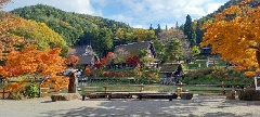 飛騨地方の農山村の暮らしを紹介したり、昔から飛騨に伝わる季節の行事などを開催している飛騨の里では、例年10月中旬から11月中旬にかけて、紅葉が見頃となります。カエデやナラなどの広葉樹が鮮やかに色づき、合掌集落を彩ります。飛騨の里では、日替わりで、わら細工や組みひも、さしこなどの実演や体験ができます。