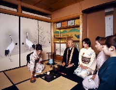 好文亭では、毎年春と秋に特別拝観として、お茶室が一般公開されます。期間中は、月釜の茶会「青蓮会」の先生ならびに社中の方々による、正式なお茶のお点前が楽しめます。さまざまな庭園など、境内には数多くの見どころもあります。