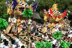 勇壮華麗な屋台の練り合わせで知られる、曽根天満宮の秋祭りが行われます。のぼりを立てた竹を、男衆たちが地面に激しく叩きつけて割る「竹割」や、額に「八」の字を描き、狩衣姿に山鳥の羽を立てた花笠をかぶった童児(頭人)が、馬の背に乗って宮入りする「一ツ物」が有名です。<※車での来場不可>