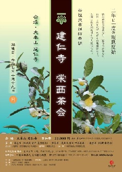 京都五山の一つ、建仁寺で「建仁寺栄西茶会」が開催されます。建仁寺御開山・栄西禅師の功績を讃え、2年に一度行われるもので、2025年は、正伝永源院で有楽流家元・真神啓仁氏による薄茶席と、清凉軒で美風流家元・中谷美風氏による煎茶席が行われるほか、大書院では祖師報恩会により、養生席が披露されます。爽やかな秋空のもと、栄西禅師や「喫茶養生記」に想いを馳せながら、一期一会のひとときを楽しむことができます。