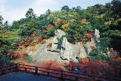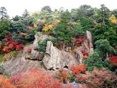 本殿や三重塔などが国指定重要文化財で知られる那谷寺の境内が、例年11月になるとヤマモミジやドウダン、カエデなどの赤や黄色で彩られます。海底噴火の跡と伝わる奇岩霊山がそそり立つ奇岩遊仙境周辺では、岩や蓮池と紅葉が調和する絶景が広がります。奇岩遊仙境を含む境内一帯が、国指定名勝となっています。