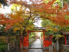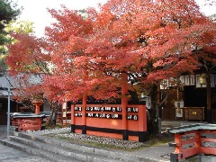 京都嵐山の名所のひとつ車折神社では、本殿前をはじめ、表参道、裏参道、第三鳥居前、稲荷神社前のほか、神社の駐車場でも風光明媚な紅葉の景観が楽しめます。境内には芸能神社があり、各界の芸能人や芸術家が参詣に訪れます。