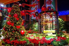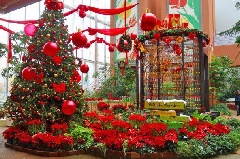 四季折々の花が咲くチューリップ四季彩館が、「クリスマス」をテーマに彩られます。チューリップが一年中咲き、季節の花とコラボレーションする「ワンダーガーデン」では、ポインセチア、シクラメンなどが主に展示され、高さ5mのクリスマスツリー、キラキラのイルミネーションが一緒に楽しめます。チューリップグッズが充実したショップのほか、ちゅうりっぷソフトクリームやランチプレートが人気のカフェ「かくれ庵」もあります。