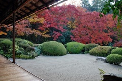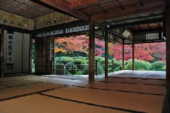 石川丈山ゆかりの詩仙堂は名園で知られ、例年11月中旬になると美しい紅葉で彩られます。狩野探幽による、中国の詩人36人の肖像と詩があることから、「詩仙堂」と呼ばれ、詩仙の間や至楽巣から眺める紅葉が特に見事です。