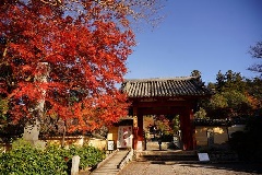 観心寺では、例年11月上旬になると国宝に指定されている金堂などが、赤のモミジや黄色のイチョウで美しく彩られます。春は梅の名所としても知られ、関西花の寺二十五番霊場にも数えられます。