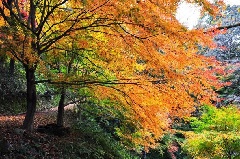 戦国時代の亀井茲矩(かめいこれのり)公の居城跡を整備した鹿野城跡公園では、例年11月中旬になると、南側にある城山(妙見山)の参道を、約600本のカエデの紅葉が彩ります。城跡には水をたたえる内堀、外堀、石垣などが今も残り、天守跡からは日本海の眺望も楽しめます。約500本のソメイヨシノが植えられ、春は桜の名所としても親しまれています。