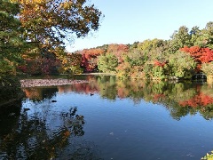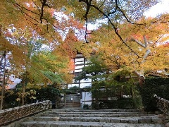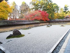 平成6年(1994年)、ユネスコの世界文化遺産に登録された龍安寺は、紅葉の名所としても名高く、例年11月下旬にはピークを迎えます。枯山水の石庭の周囲や、鏡容池の周りをモミジの色鮮やかな赤が取り囲み、一層、情趣溢れる景色を堪能できます。