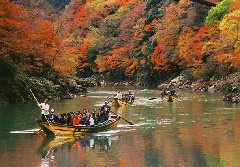 四季折々の美しさで知られる景勝地、保津渓谷では、例年11月になると山肌を覆う木々が色づき始めます。亀岡から京都の名勝・嵐山までの約16kmは、保津川下りや嵯峨野トロッコ列車などで渓谷美の眺望が楽しめ、絢爛な紅葉を満喫できます。※公共交通機関の利用をお勧めします(車での来場を推奨しない)。