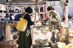清水焼団地町一帯で、年に一度の大陶器市「清水焼の郷まつり」が開催されます。「大陶器市」では京焼・清水焼を中心に、100余の製陶事業者が団地内に軒を連ね、魅力的な器が並び、お得な掘り出し物も多数です。飲食店の出店もあり、多くの人で賑わいます。