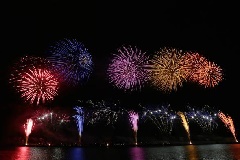 阿久根市の「み(見・魅・味・美)どころ」をアピールする「阿久根みどこい祭り」の花火大会が、阿久根新港外港で開催されます。華やかに輝く花火が次々と打ち上げられ、秋の夜空を彩ります。