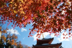 江戸期創建の八事山興正寺では、例年11月下旬から紅葉が美しく色づき、境内の五重塔や庭園が秋の彩りに包まれます。四季折々の自然の美しさに囲まれた、普門園の竹翠亭で、ゆっくりとした時間を過ごせます。八事山興正寺の創建当初は、学問と修行の「東山」と、参拝のための「西山」に分かれていましたが、現在は、緑豊かな境内を散策しながら7つのお堂を参拝することができます。