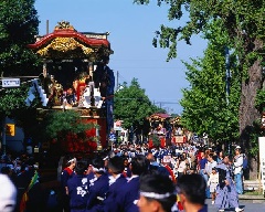 江戸時代初頭から行われてきた天孫神社の例祭で、国の重要無形民俗文化財に指定されています。宵宮にはコンチキチンの囃子が聞こえ、無数のちょうちんが各町内で飾られます。本祭では、ベルギー製ゴブラン織りや精巧な金具に飾られた豪華絢爛な13基の曳山が巡行するほか、カラクリの披露もあります。
