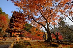 奈良大和路の花の御寺、長谷寺では、例年10月中旬から紅葉が見頃となり、山里の古刹が錦秋に包まれます。モミジなどの木々が色づき、赤、橙、黄のグラデーションが山面を美しく彩ります。本尊大観音尊像秋季特別拝観も行われ、日本最大級10m18cmの観音様の御足に触れて「ご縁」を結ぶことができます。本尊十一面観世音菩薩立像は、国の重要文化財に指定されています。